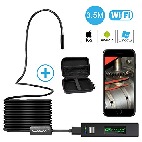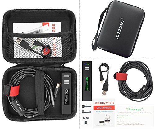 - ◆RECHARGABLE BATTERY, RISK-FREE PURCHASE - Built-in high capacity rechargeable lithium polymer,can be replenished via the micro USB charging port. WHAT YOU GET:GOODAN WIFI Box for Endoscope,Micro USB charing cable,3.5m(11.5ft) semi-rigid cable camera,hook /side view mirror / magnetic accessory,Manual,our worry-free 6-month warranty and friendly customer service,which make your purchase absolutely risk-free and you can enjoy testing out it's quality and durability!