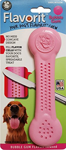 Studio : Pet Qwerks Interactive Publisher : Pet Qwerks Interactive Binding : Misc. Product Description Engineered for aggressive chewers in mind. Tiny flavor cells are molded into both sides of the Flavorit nylon bone so you can fill it with peanut butter, cheese, cream cheese, or any other spreadable treat your dog prefers. The tiny flavor cells hold just enough spread to lure your dog to chew, but not so much that they're getting so many calories. You can even add a different spreadable treat on each side to up the flavors! No mess because it’s concave design. 0