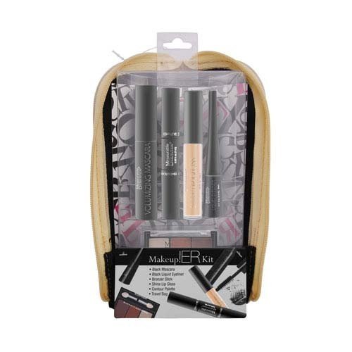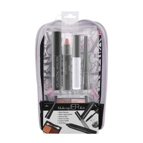 Let your face beam with skin-softening glow with the Makeup ER! Kit's bronzer set. The kit contains 5 signature beauty essentials a girl may need to help her add an extra boost of healthy-looking radiance at any moment. Includes: 1 x 0.21 fl oz (6.5 mL) Mascara - Black 1 x 0.11 fl oz (3.5 mL) Liquid Eyeliner - Black 1 x 0.1 oz (3 g) Bronzer Stick 1 x 0.06 fl oz (2 mL) Lip Gloss - Silver Shimmer 1 x (2 x 1.5 g) Face Contour Palette 1 x Travel Makeup Bag