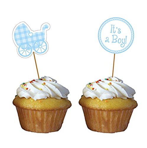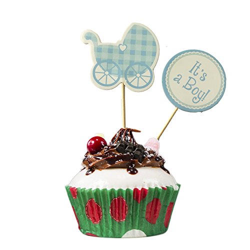 PARTYMASTER Baby Party Decorations Lot of 24PCS Food Toothpicks Cupcake Toppers Cupcake Picks,Mixed Packaging,Boy