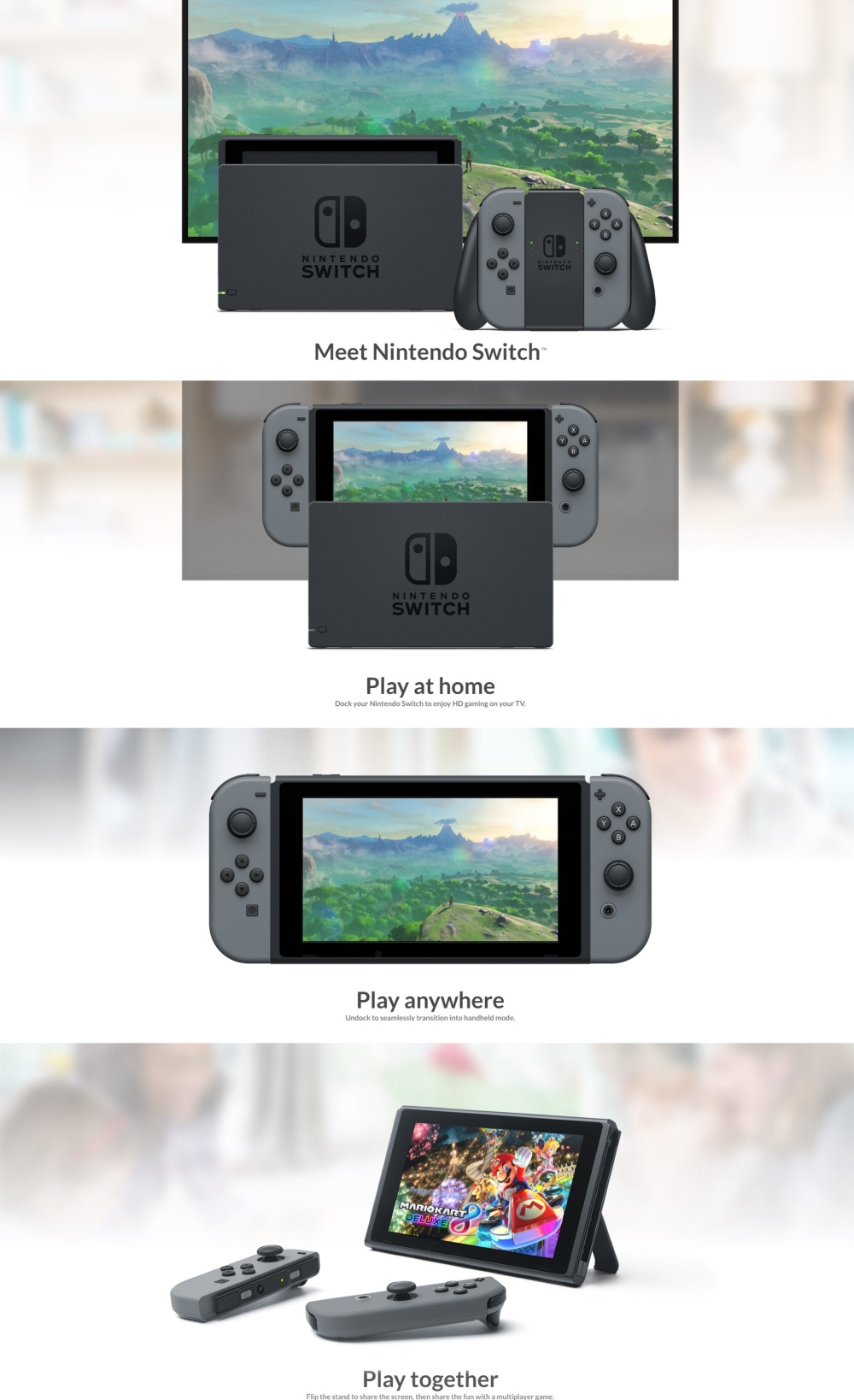 Introducing Nintendo Switch, the new home video game system from Nintendo. In addition to providing single and multiplayer thrills at home, the Nintendo Switch system can be taken on the go so players can enjoy a full home console experience anytime, anywhere. The mobility of a handheld is now added to the power of a home gaming system, with unprecedented new play styles brought to life by the two new Joy-Con controllers.