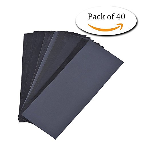 40 Sheets 400 to 5000 Grit Sandpaper Assortment, Dry/ Wet, 9 x 3.6 Inch, for Automotive Sanding, Wood Furniture Finishing (Pack of 40)