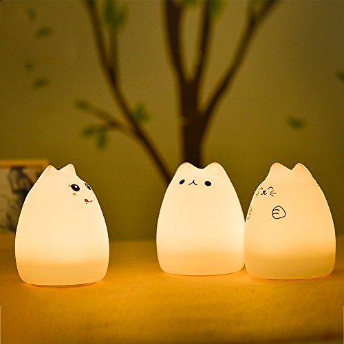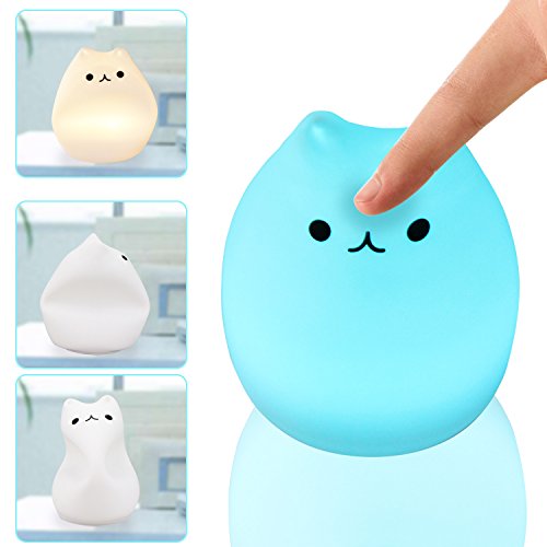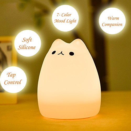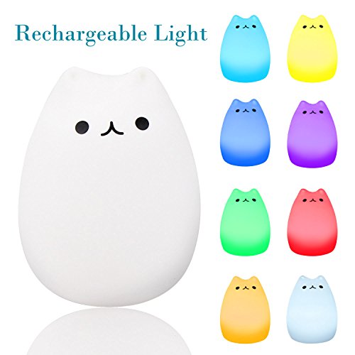 EMDMAK Baby Night Light USB Rechargeable Silicone Night Lamp with 7-Color Mood Light, Sensitive Tap Control for Baby Kids Adults (Kitty C)