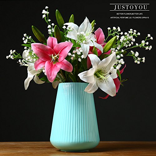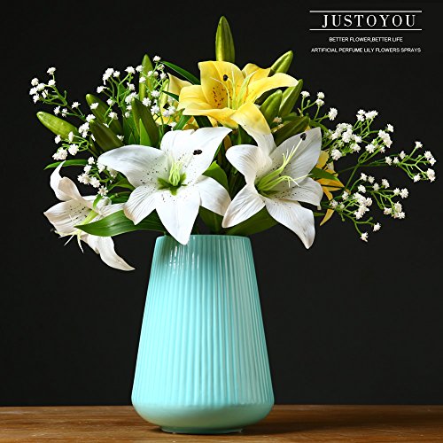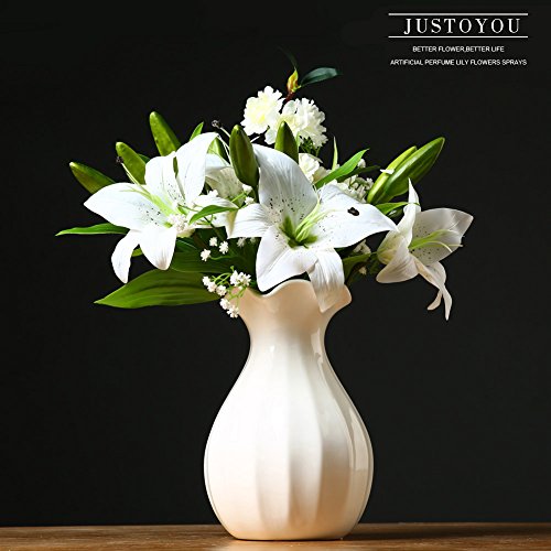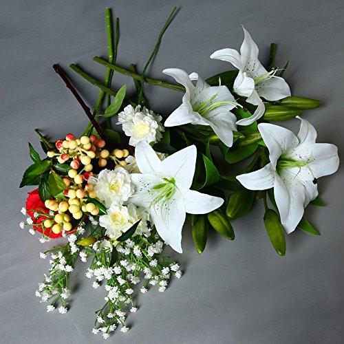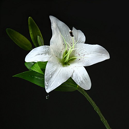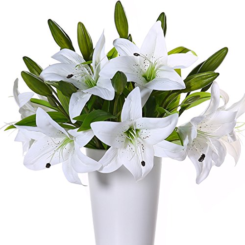 JUSTOYOU 4pcs Artificial Lily PU Flower for Bridal Bouquet Wedding Décor Home Arrangements (White)
