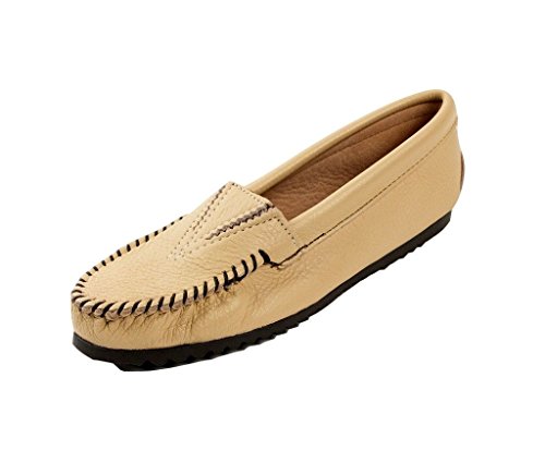 A simple front gore combines fashion and fit to accommodate your foot with utmost precision. Genuine deerskin is flexible and adapts to the contours of your feet for a personalized fit. Soles are lightweight and pliable, bending as you bend. Durable and attractive toe seams are the finishing touch on this simple yet sumptuous moccasin.Feature