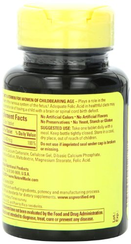 Contains 100% RDA of folic acid per serving tablet