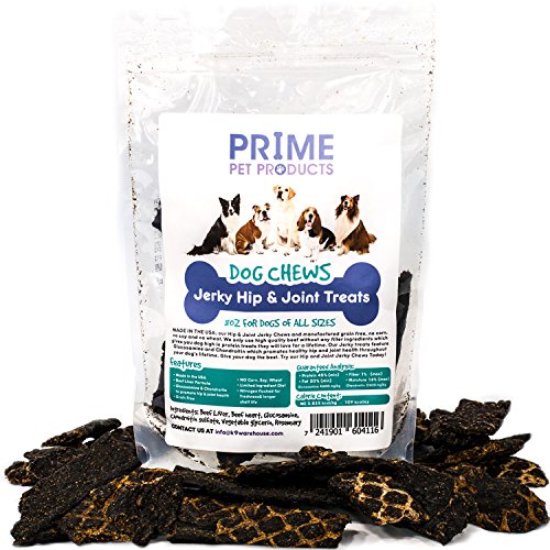 -. Feature : GLUCOSAMINE CHONDROITIN JERKY CHEWS: Give your pup only the best. Our jerky treats are packed with the benefits of glucosamine and chondroitin formulated to support and promote healthy hip and joint health throughout your dogs lifetime / TASTY TREATS YOUR DOG WILL LOVE: We only use high quality beef in our glucosamine dog treats without any filler ingredients which gives your dog a high protein treat they'll love for a lifetime / GIVES YOUR DOG RELIEF FROM HIP & JOINT PAIN: Wouldn't you love to see your dog run and play like a puppy again..THEN you'll love how the P.R.Ime Pet Products Hip & Joint Dog Chew Beef Jerky Treats leverages the power of glucosamine and chondroitin to effectively and naturally help your pet feeling younger and prevent a slew of common dog health issues / MADE IN THE USA: Our Jerky Hip & Joint Supplement Chews are manufactured right here in the USA and Grain Free, without any Corn, Soy, or Wheat. Veterinarian-Approved. Available in 8 oz & 16 oz / ❤ BUY WITH CONFIDENCE: 100% SATISFIED OR YOUR MONEY BACK ❤: We have over 10,000 Perfect Orders & a stellar 4.9-star Seller Rating, so you can be confident that your satisfaction is always our #1 P.R.Iority and that we'll do everything in our power to make sure you have an excellent customer experience and best glucosamine for dogs