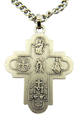 -. Title : Four Way Cross Crucifix 1 3/8 Inch French Nickel Silver Pendant