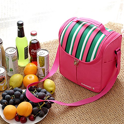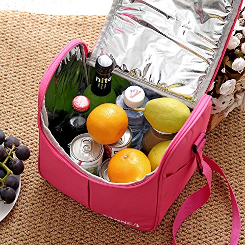 Insulated Pinic Bag, 7L Oxford Insulated Lunch Bag Tote Lunch Box with Adjstable Shoulder Strap for Women / Men / Picnic / Outdoor / Camping - Rose