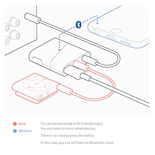 -. Feature : Bluetooth Music Receiver:You can hear highest quality audio from your smart device to your audio system. / Elegant Design:Machined Aluminium Body, High quality anodizing, Premium Finish, Small size / External High Performance DAC:Burr-Brown PCM5121 DAC 24bit,SNR:106dB,THD:-93dB,44.1K/48KHz / Mixer:Audio Input + Bluetooth Audio, Can hear the music of wired and wireless without control.