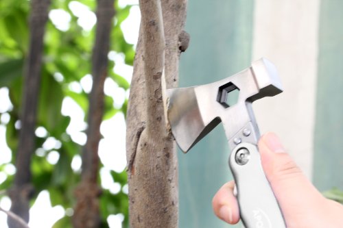-. Feature : All-in-one tool includes: axe, hammer, hex screwdriver, hard/soft file, Phillips screwdriver, bottle opener, serrated saw blade and knife / Stainless steel construction / Rust resistance and anti-corrosion finish / Meets ANSI standards / Comes in a gift tin