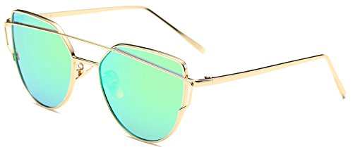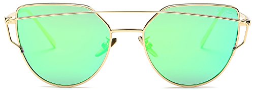 SojoS Cat Eye Mirrored Flat Lenses Street Fashion Metal Frame Women Sunglasses SJ1001 With Gold Frame/Green Mirrored Lens