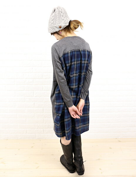 think natural(シンクナチュラル) ウール混 天竺 チェックコンビ 長袖 ワンピース・5864