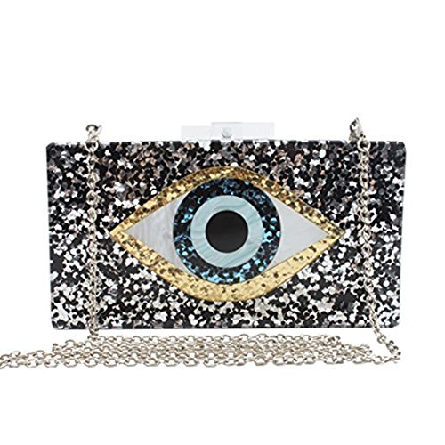 BeautyWJY Silver Eyes Purse Shoulder Handbag Acrylic Clutch Evening Bags for Women