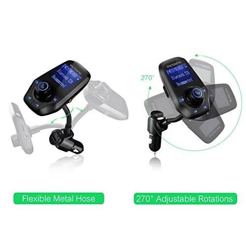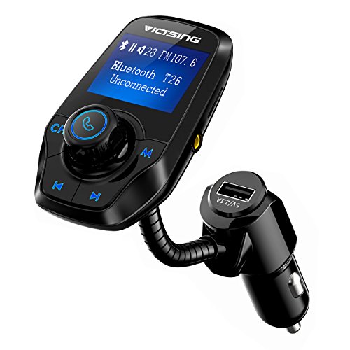 VicTsing FM Transmitter for Car, Bluetooth FM Transmitter Wireless Radio Adapter with 1.44'' Display and USB Charger, Car MP3 Player Support Micro SD Card AUX Input