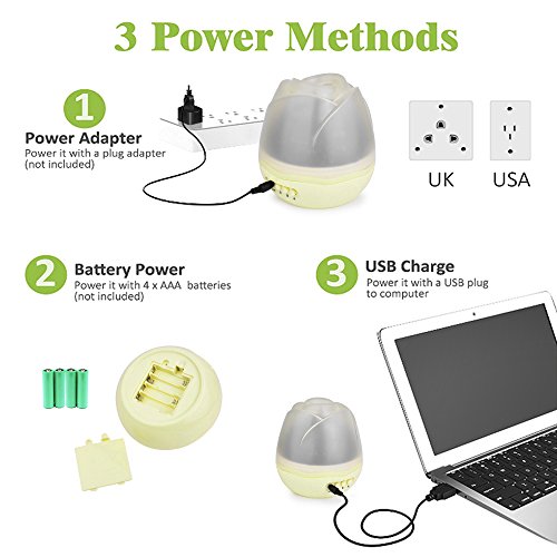 - Charging convenient --- 1.Power it with a USB port into a wall adapter (Adapter not included). 2.Power it with a USB plug to computer. 3.Power it with 4 AAA batteries (not included). And please note that the USB Cable and the Batteries CANNOT be used at the same time.
