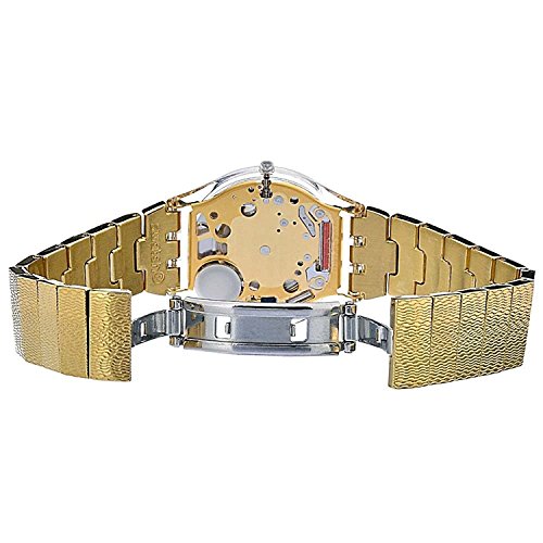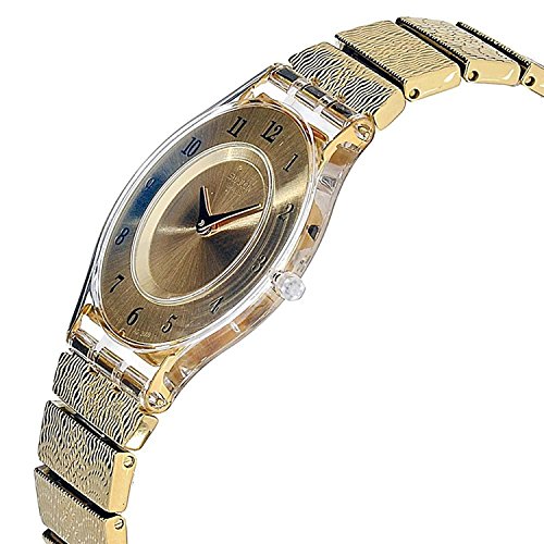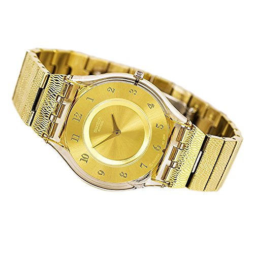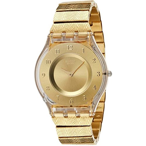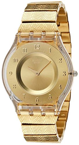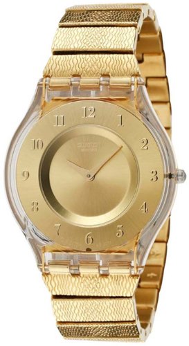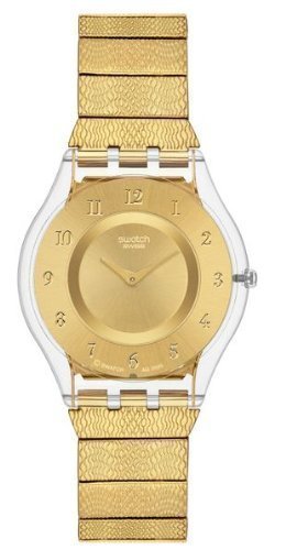 Studio : Swatch Publisher : Swatch Binding : Watch Product Description Collection : Lifestyle Collection date : 2010 Gender : Female Movement : Quartz Family : Skin Size :M Case dimensions : Length 38.00mm / Width 34.00mm / Thickness 3.900 Water resistance : 3 bar (30m / 100ft) Color : Yellow Case Material : Plastic Strap color : Yellow Strap material : St. Steel Adjustable 0