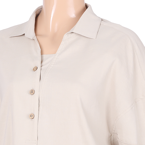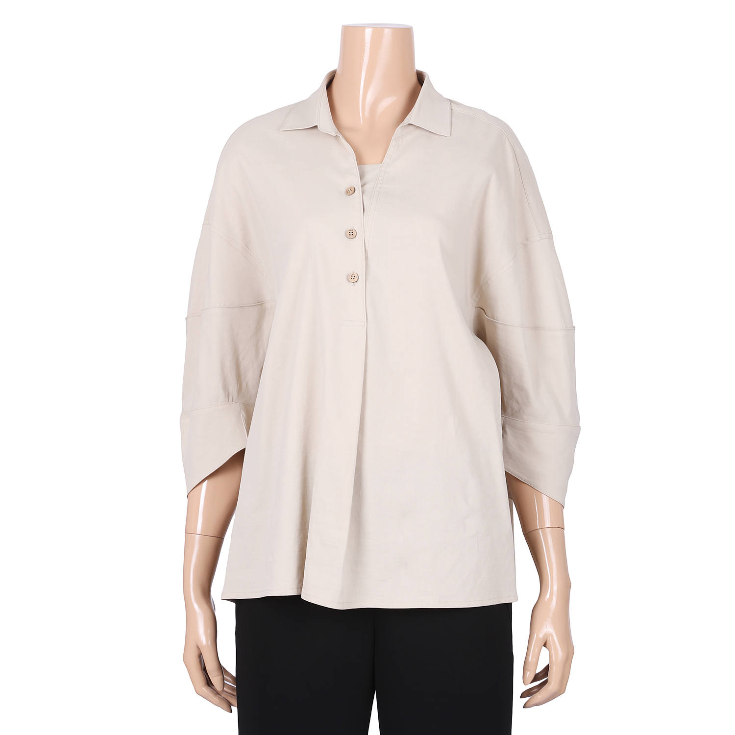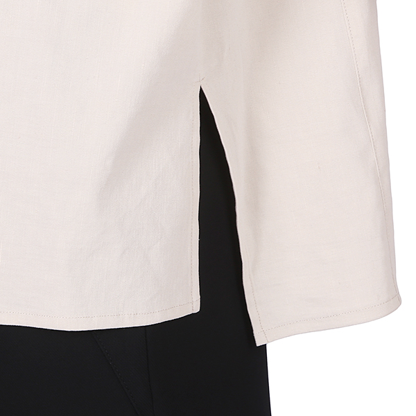 이 제품은 기본형의카라의 심플함과 앞섶 앞트임느낌과 안단과 단추의정갈함과 자연스러운 주름의 여성스러움과 귀여움이 있으며
