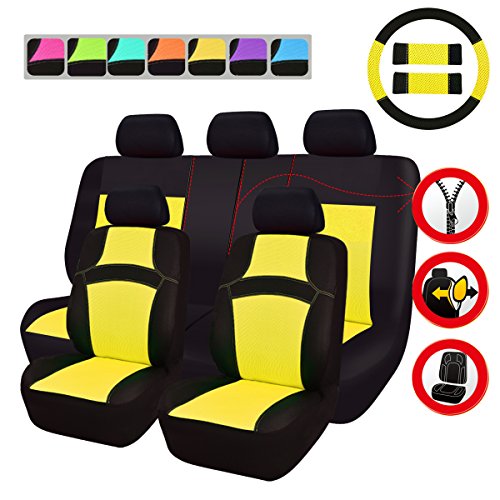 FASHION DESIGN IN RICH AND PERFECT COLORS . Looks gorgeous and feels really nice when driving. Make your car seat looks so different than others. Get the compliments by using our RAINBOW car seat covers NOW. Easy Carry Package with 9PCS Included: 2 front seats covers, 2 backrest covers, 2 separate headrest covers,2 shoulder covers,1 steering wheel cover.