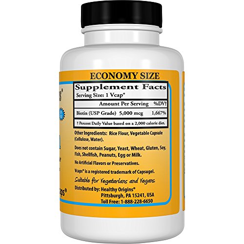 Studio : Healthy Origins Publisher : Healthy Origins Binding : Health and Beauty Product Description Healthy Origins Biotin Description: - ECONOMY SIZE