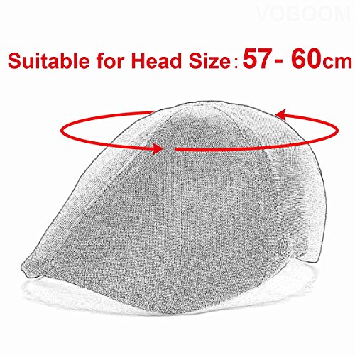 Binding : Apparel Product Description VOBOOM® linen Flat Cap Cabbie Hat Gatsby Ivy Irish Hunting Newsboy Style: Newsboy Caps Interior: lining Brim: small stiff brim in front Features: comfortable. stylish, Classic 2. One adjustable Size: 57cm-60cm(7 1/8- 7 1/2) Please kindly check your head size before buy! Material: 60% Linen 40% Cotton. comfortable and breathable. Wash Instruction: Do not wash, wipe with moist cloth All authentic VOBOOM products sold through Amazon are sold only by the seller VOBOOM. Products that are sold by other sellers are counterfeit products similar in design. Please note that these unauthentic products does not have same quality such as color, fabric, construction and over all design and feel as VOBOOM's products. VOBOOM does not support the quality assurance of these counterfeit products. Hence, please check the name of seller before purchasing. 0
