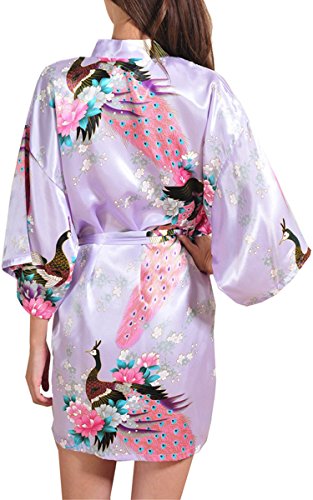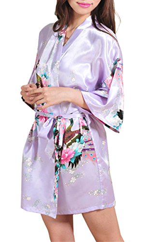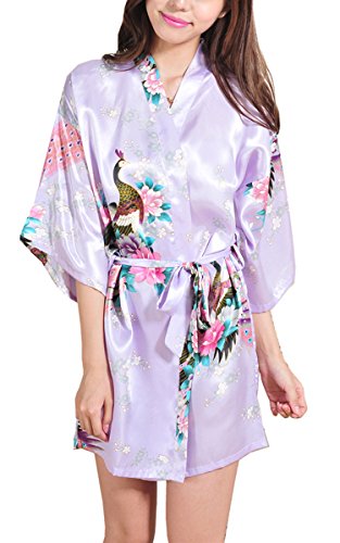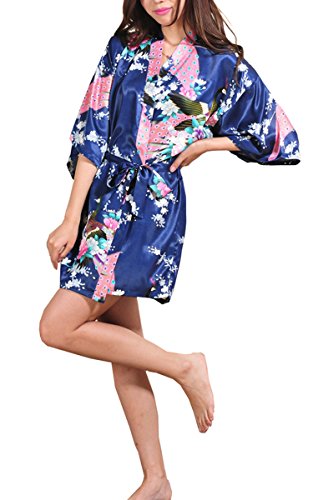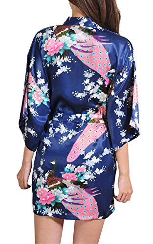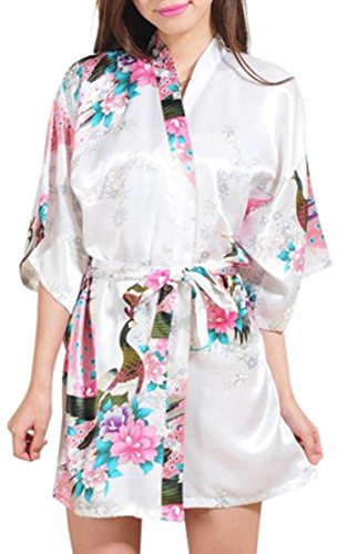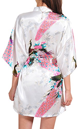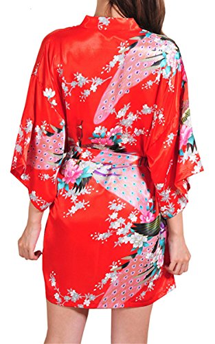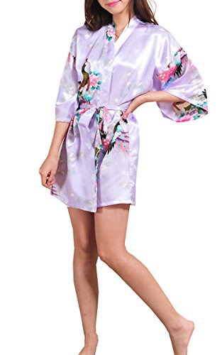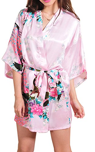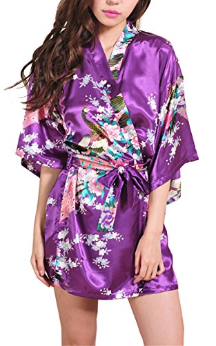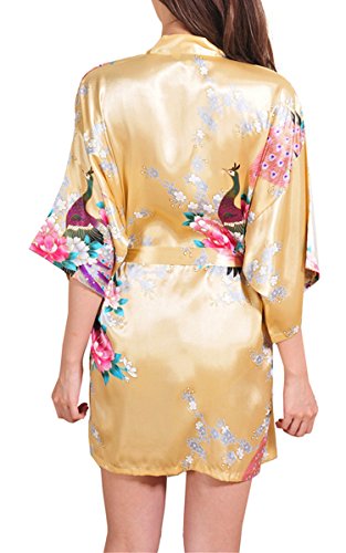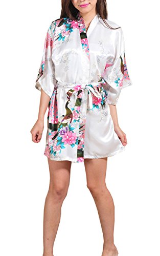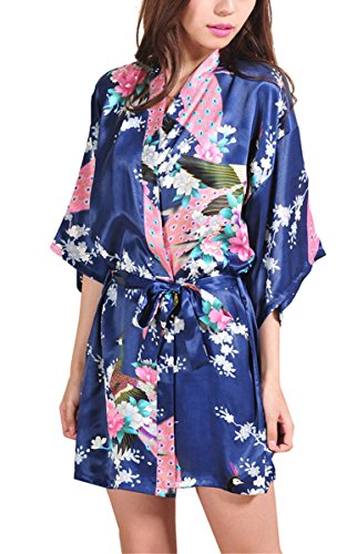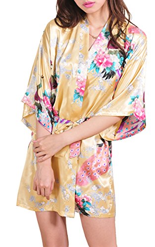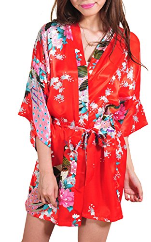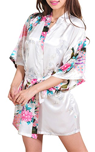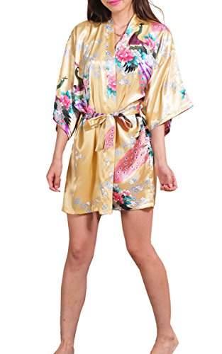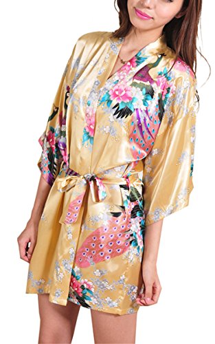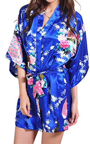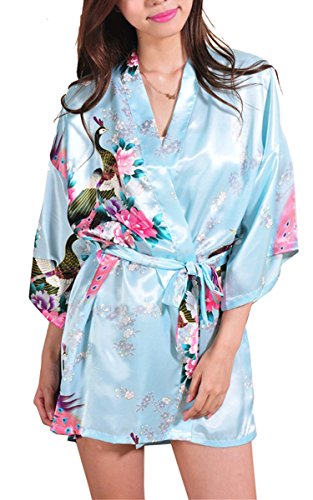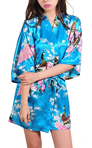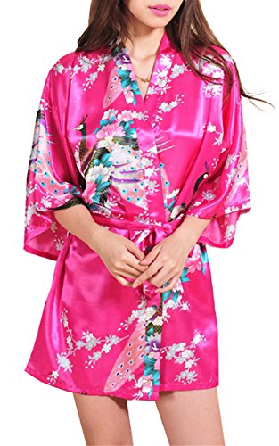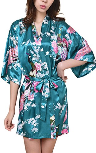 | Fashionshop365 Women's Bridesmaid Peacock Short Kimono Robe Satin Sleepwear |