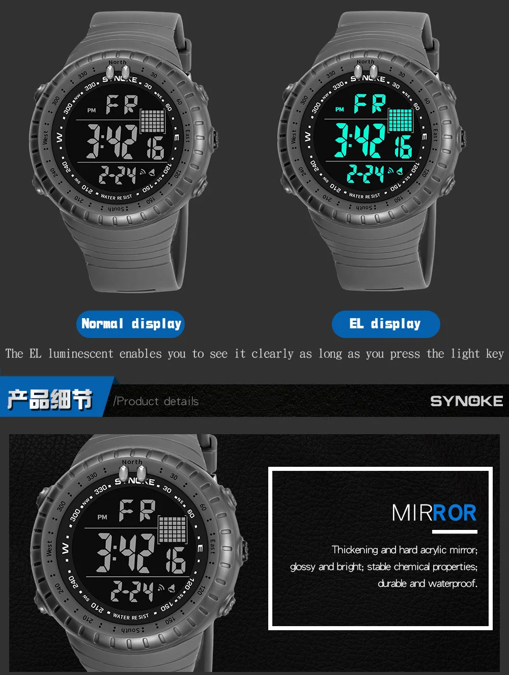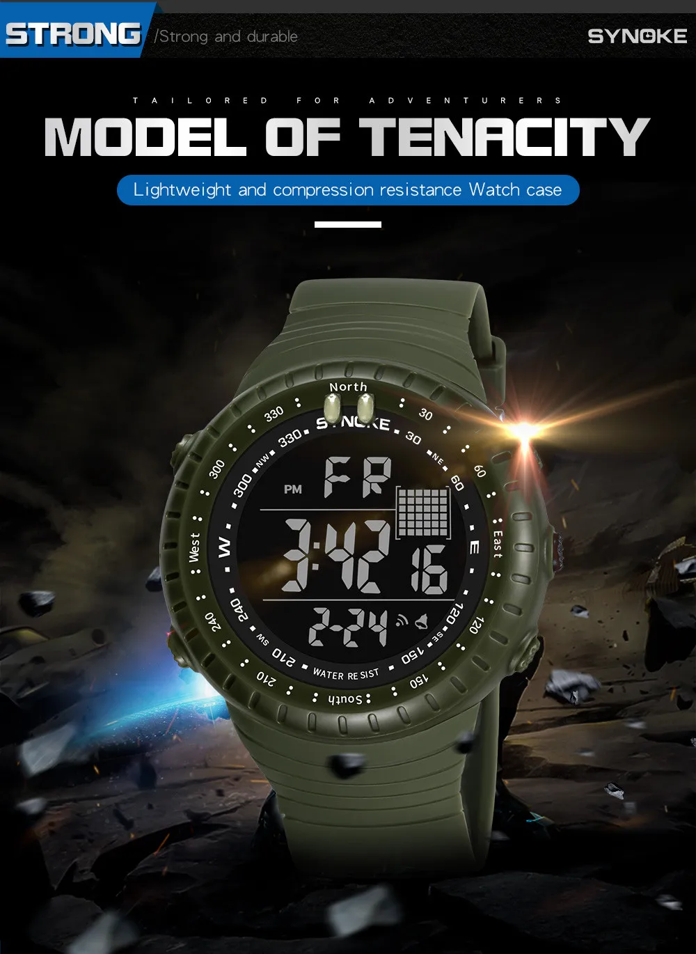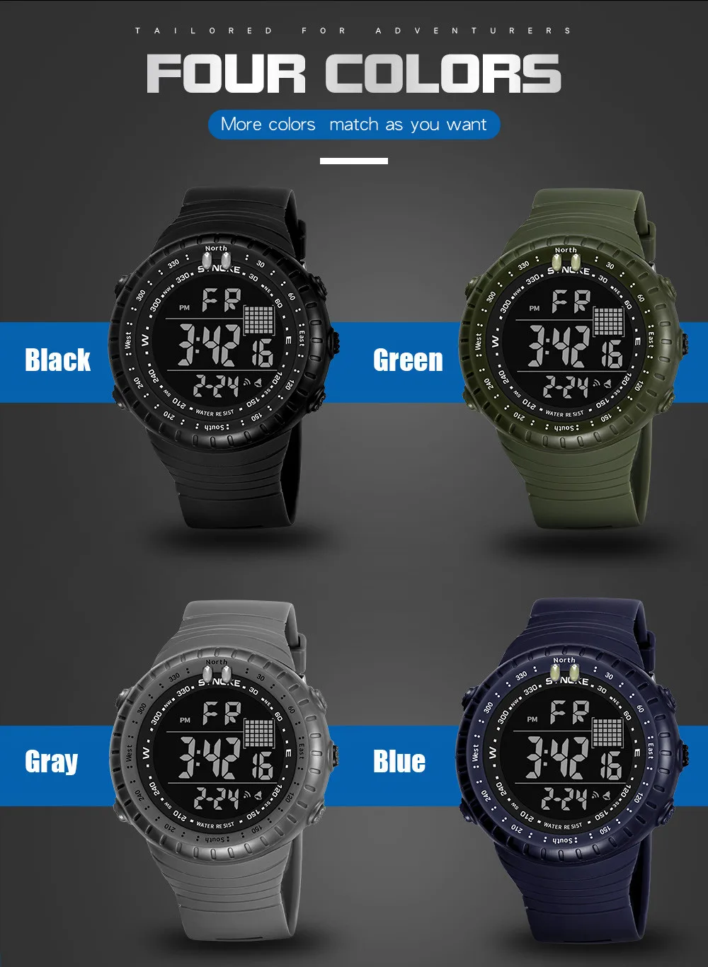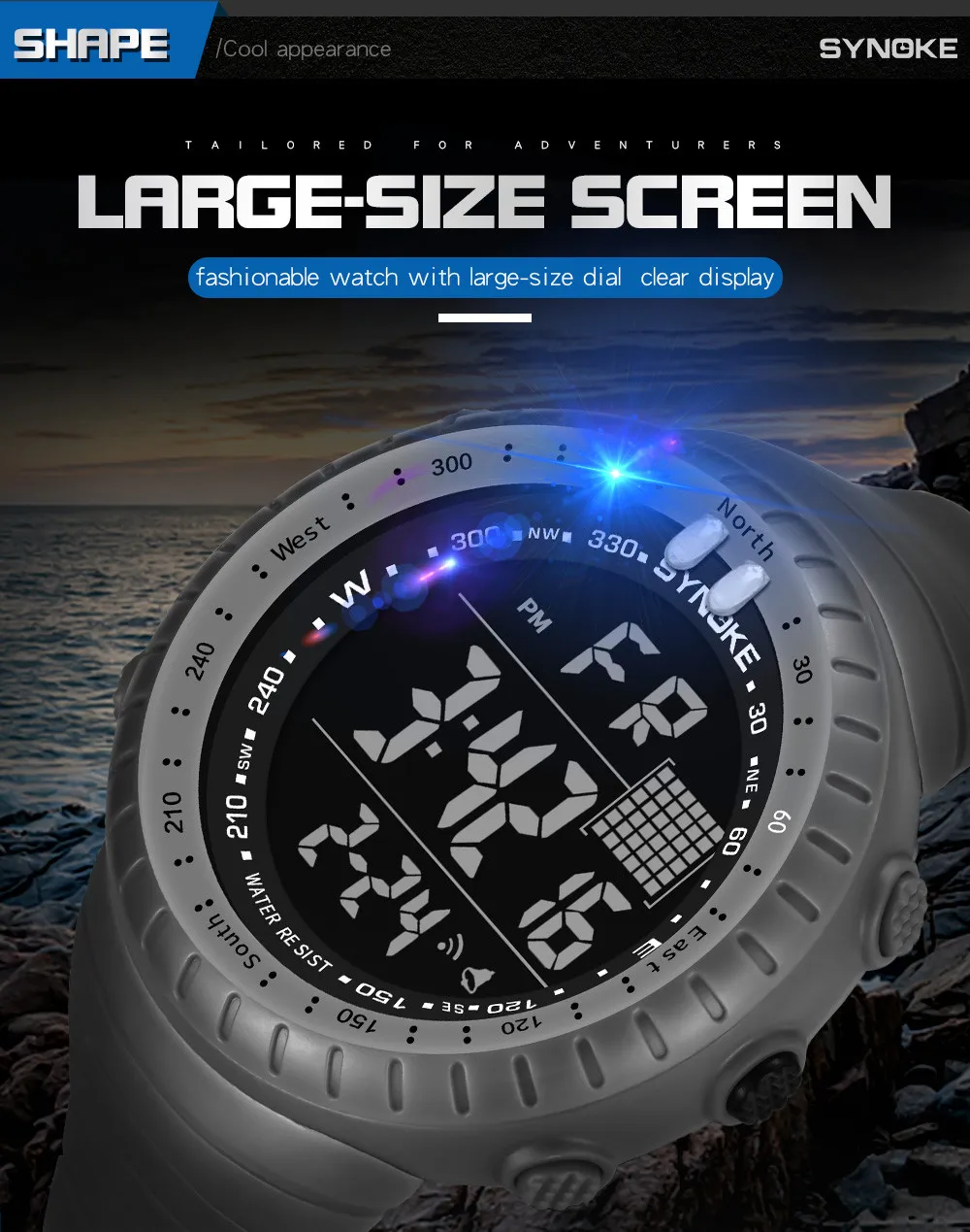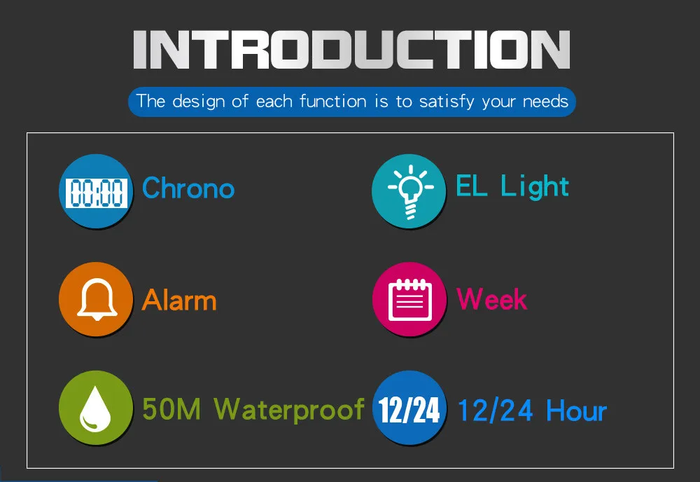 Feature:Shock Resistant,Water Resistant,Stop Watch,Back Light,LED display,Swim,Alarm