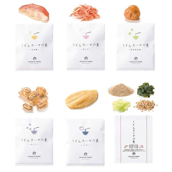 ●北海道産昆布と枕崎産かつお節と九州産のさば節で海の風味を利かせただしスープです。大地の恵みと海の幸が口の中に広がる、心にもカラダにもやさしい味の、うどんのセットをご用意しました。