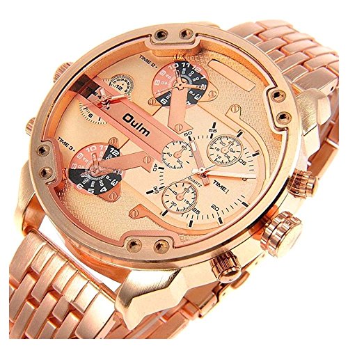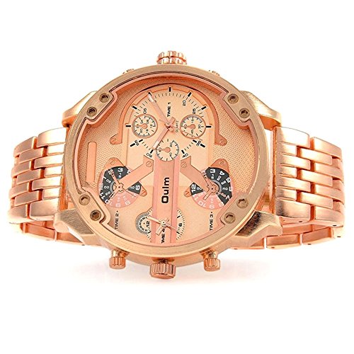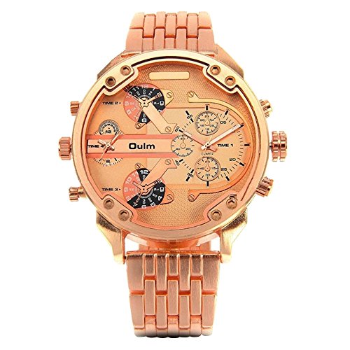 -. Title : Men Sport Watches - OULM Luxury Men Watches Sport Large Dial Dual Time Quartz Wrist Watches Rose Gold