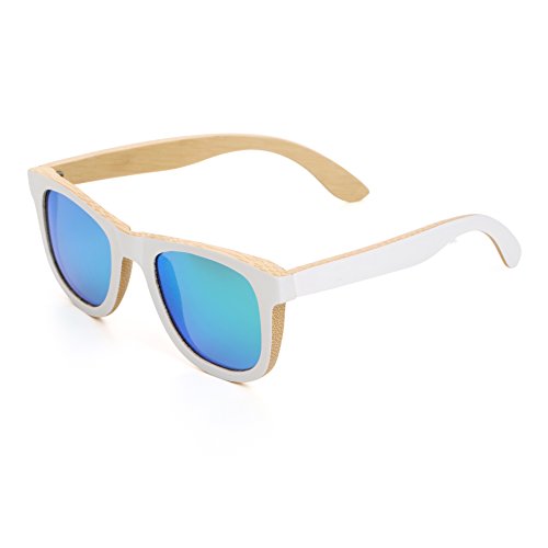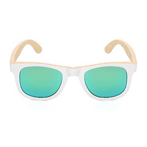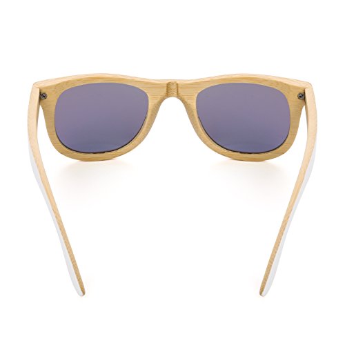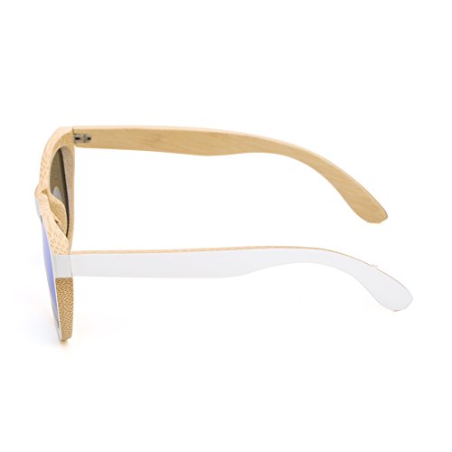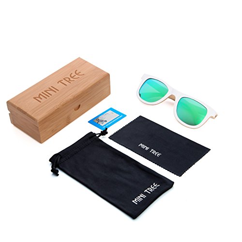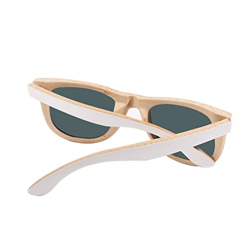Mini Tree Wayfarer Anti-Glare Polarized Bamboo Sunglasses White Frame Vintage Eyewear