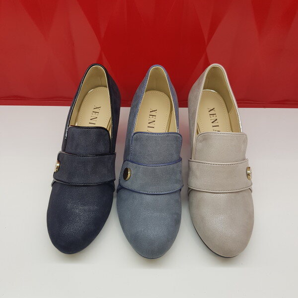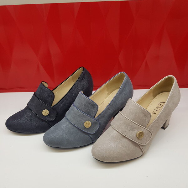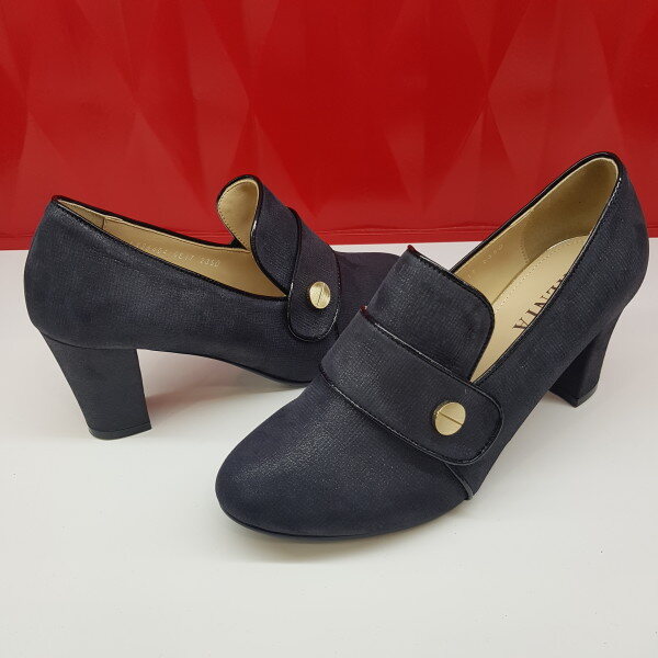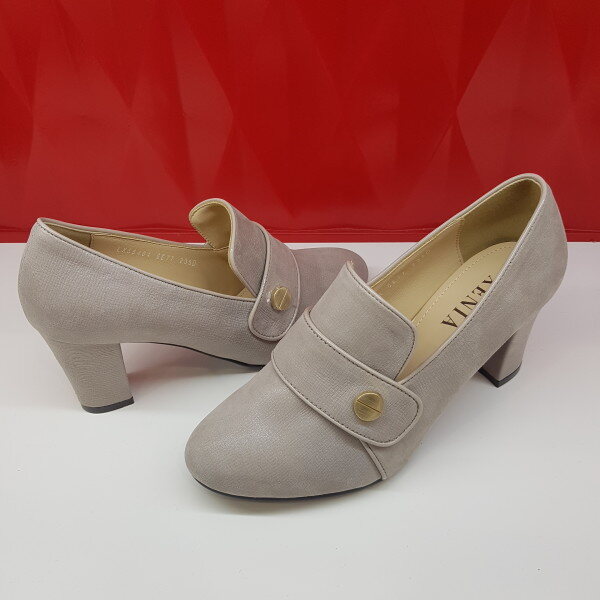◆ POINT : 금속 버튼장식 포인트 힐로퍼. 7CM의 힐로퍼로 블럭굽으로 안정감있고 감각적인 DSN. 골드장식과 은은한 무늬피로 고급스러운 느낌을 살린 제품.