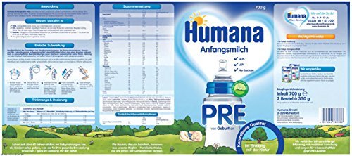 -. Binding : Lebensmittel & Getränke -. Brand : Humana -. EAN : 4031244780386 -. Feature : Humana: Kontrollierte Qualität seit über 60 Jahren / GOS: wichtige Ballaststoffe wie sie auch in der Muttermilch vorkommen / LCP: langkettige, mehrfach ungesättigte Fettsäuren wie sie auch in der Muttermilch vorkommen / Lactose: Anfangsmilch PRE enthält wie Muttermilch als verwertbares Kohlenhydrat nur Lactose / Ohne glutenhaltige Zutaten hergestellt (lt. Gesetzt) -. Label : Humana -. Manufacturer : Humana -. Model : 78038_1 -. MPN : 78038_1 -. NumberOfItems : 1 -. PackageQuantity : 1 -. PartNumber : 78038_1 -. ProductGroup : Grocery -. ProductTypeName : GROCERY -. Publisher : Humana -. Studio : Humana -. Title : Humana Anfangsmilch Pre mit LCP und GOS, 1er Pack (1 x 700 g)