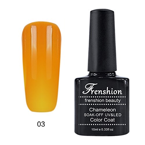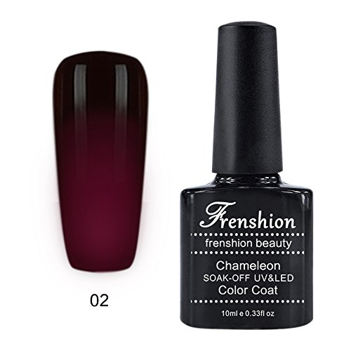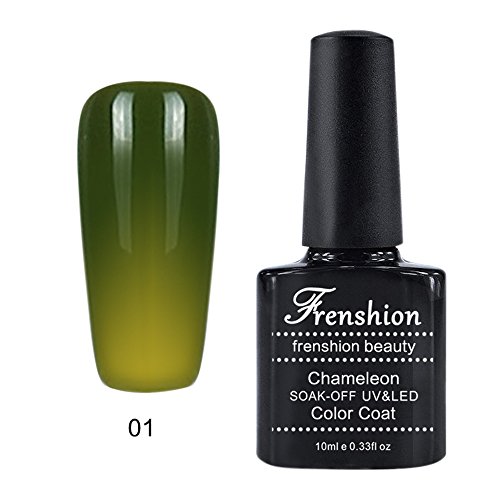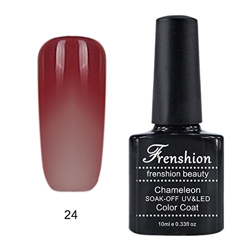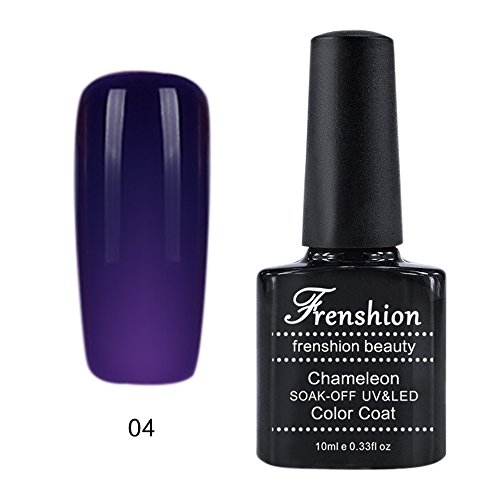 -. Binding : Misc. -. Brand : Frenshion -. Feature : With our brand FRENSHION and the certificate SGS, you got a high quality gel polish in 10-15 business days with DHL / 10ML each bottle, the color changes at 24 degrees, which makes you more beautiful / Chameleon varnish with a duration of three weeks or more, hardens and dries under UV or LED lamp, very easy to apply / We are an experienced manufacturer and seller, there are 48 colors for you to choose / Any problems about the product and the delivery, please contact us directly, we will reply you as soon as possible -. IsAdultProduct : 0 -. Label : Frenshion -. Manufacturer : Frenshion -. ProductGroup : Beauty -. ProductTypeName : BEAUTY -. Publisher : Frenshion -. Studio : Frenshion -. Title : Frenshion 10ML Chameleon Thermic Varnish Semi Permanent Soak-off UV LED Gel Polish Base Top Manicure Temperature Color Changing