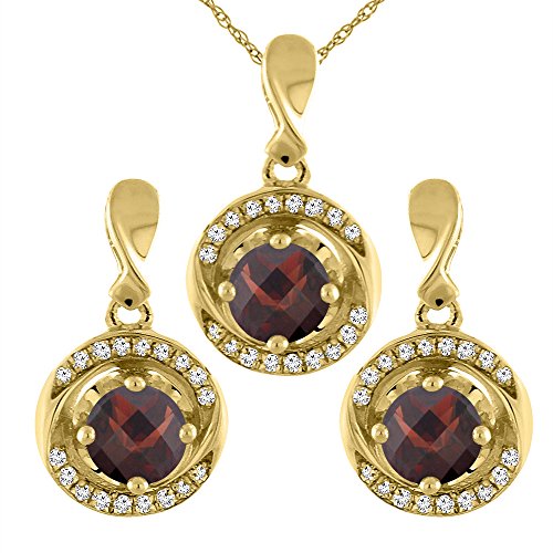 -. Title : 14K Yellow Gold Natural Garnet Earrings and Pendant Set with Diamond Accents Round 4 mm