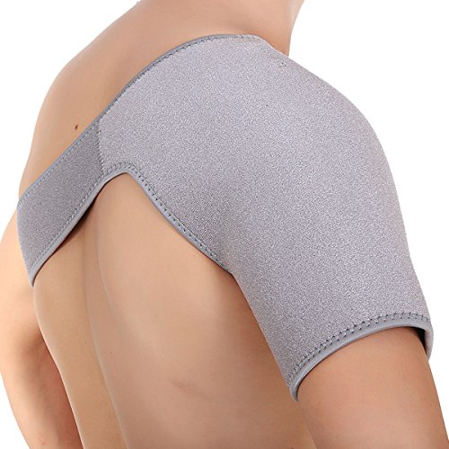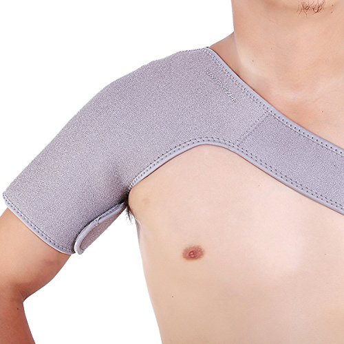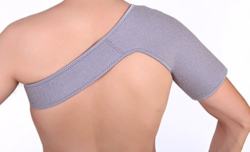 -. Feature : Nylon, anti-bacterial SINGLE shoulder support. / Effective warming support for preventing the dislocation of shoulder joint and sprain. / Lightweight with good moisture wicking and air permeability, perfect for everyday wear. / Adjustable velcro strapping helps provide an anatomically correct fit, ensuring proper support. / Size: Adjustable belt: 90 cm / 35.4 inch; Shoulder cup: 38 cm / 15.0 inch; Width: 28 cm / 11.0 inch.