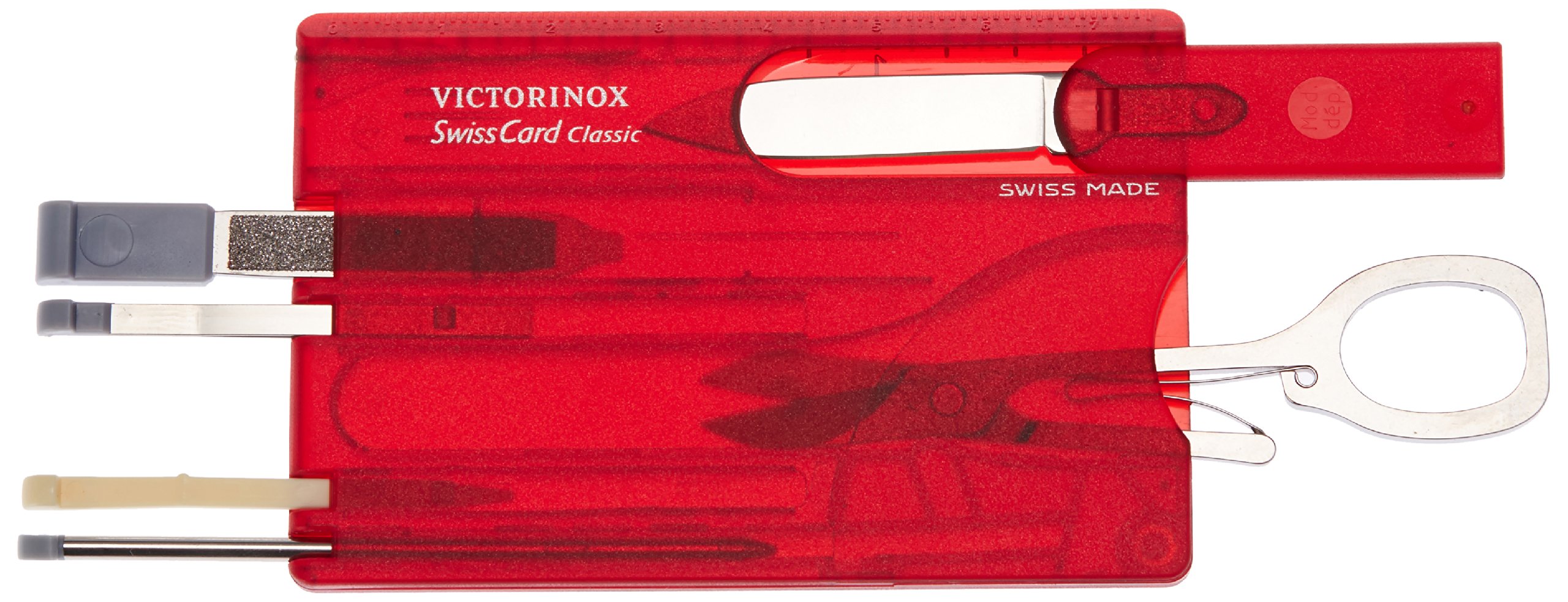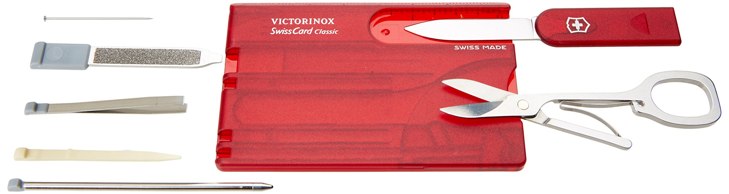 / VICTORINOX Multi Tool Swiss Card T Tool / Details of Multi Tool / 【Color】 Ruby Red Blue Sapphire Size: About 55 × 82 mm Weight: Approx 26 g Blade material: Stainless steel ● Minus screwdriver (small) ● Tweezers (shaving) ● Toothpick ● Scissors