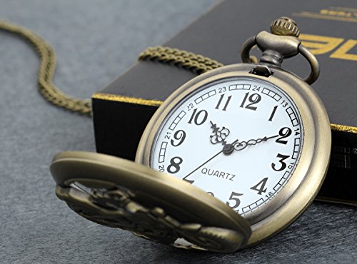-. Feature : 100% brand new, one watch in total, come with one velvet gift bag / Chain:31.5"(80cm), Case Diameter:1.8"(4.7cm), Thickness:0.6"(1.6cm) / Antique Brass Tone Vintage style with motorcycle hollow out carve, You can tell time without open it / Stylish and fashion, quartz movement, vintage in outer appearance with delicate craft, durable to keep with / Living waterproof design (Not suitable for swimming, diving, shower, etc.)