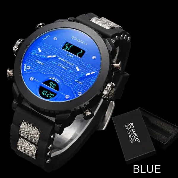Feature:Water Resistant,LED display,Perpetual Calendar,Multiple Time Zone,Stop Watch,Auto Date,Complete Calendar,Shock Resistant,Chronograph