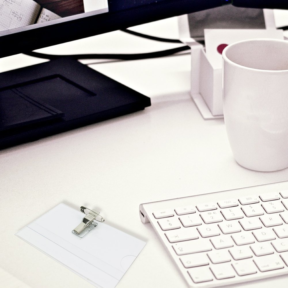 Safety pins, clip dual size size card step 56 mm × 90 mm color transparent
