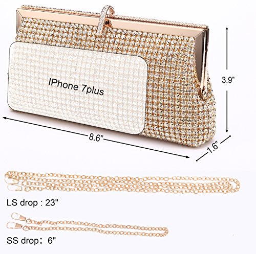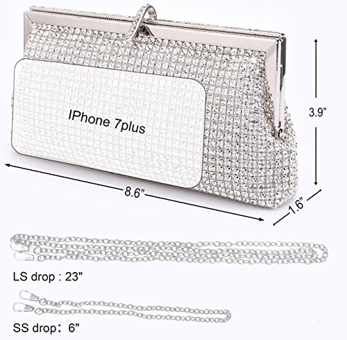 Product Description Happy Shopping From Funny Ama. Funny Ama engage in providing U a quality, useful, funny item and good service for all customers. 1.Step up your special-event style with an extra dash of fashion and elegant,just accessorize your wedding dress or little black dress with this gorgeous Purse, any look will be instantly transformed into a dazzling ensemble. 2.Shimmering Rhinestones studded fully on this elegant clutch handbag, which can easily turn heads with both the elegant style and your eye-catching sparkle. 3. Rhinestone embellished snap closure and 100% hand made material lining, has plenty of space for small essentials like lipstick, ID, keys and your Phone. 4.You can hold item in hand as a clutch or slip over an arm using either the removable chain handle or the removable chain shoulder strap.