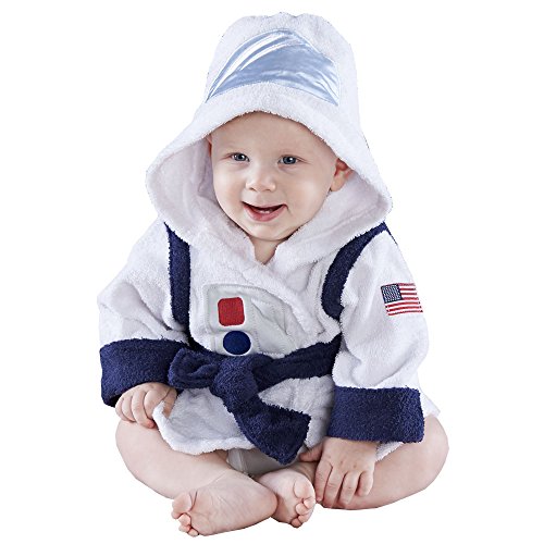 The only thing cuter than this cozy, hooded penguin spa robe is the little one who's wearing it. Those chilly, water-loving waddlers warm everyone's heart, and our penguin spa robe keeps baby warm, too. Features and facts: Penguilicous navy-and-white, hooded, terrycloth spa robe with embroidered eyes, an orange 3D beak, and a terry tie at the waist. Made of 100% washable terrycloth. Presented on decorative cardboard hanger. Size 0-9 months.Feature