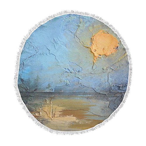 KESS InHouse Carol Schiff Moon Glow Blue Orange Mixed Media Round Beach Towel Blanket