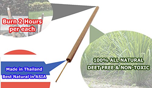 100% ALL NATURAL & DEET FREE & NON-TOXIC : Chemical free made from Citronella and Thai Herb. A Harmless way to protect your family, friends and yourself against. Citronella Sticks No harsh chemical filled sprays, oils or creams to put on your skin and help protect family.