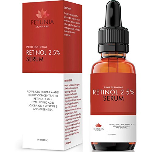 -. Feature : TURN BACK THE TIME OF AGEING - Protect and restore the energy of your skin with our potent Petunia Skincare Retinol Serum. The powerful formula works on the progressive signs of aging so you can say goodbye to your fine lines and wrinkles and welcome back natural radiance and healthiness within your skin. / NATURAL INGREDIENTS WITH SUBSTANTIATE RESULTS - This miracle in a bottle is bursting with natural antioxidants with a powerful combination of Vitamin C, Green Tea, Astaxanthin and COQ10. This sure is a potent blend made to diminish damage and protect skin from future damaging factors. / A WAVE OF HYDRATION FOR YOUR SKIN - Contains a substantial blend of Hyaluronic Acid, Niacinamide and Argan Oil for a powerful boost of hydration and revival in the skin. This helps to maintain youthful looking skin that feels smooth and moisturized. / MADE FROM A TRUSTED SOURCE - Every Petunia Skincare product is made and manufactured cruelty-free in the USA at our FDA registered facilities for customer's health and safety satisfaction. / MONEY BACK PROMISE - Not a fan of the product? Don't worry; every Petunia Skincare product including the Retinol Serum is backed with a 100% money back guarantee - just return the packaging, full or empty, within 90 days of purchase!