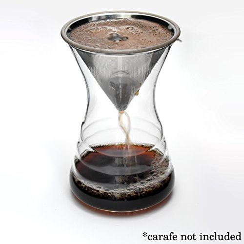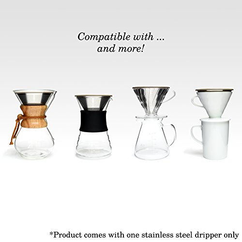 -. Brand : ovalware -. Color : Stainless Steel -. EAN : 0859305006039 -. Feature : ➤ THE CLEVER WAY TO BREW COFFEE - Common, paper filters inhibit the brewing process and retain the majority of coffee's natural oils and aromatic particles. Our reusable dripper does NOT absorb coffee's essential oils and nutrients, allowing you to revel in a strong, organic brew! / ➤ DURABLE CONSTRUCTION - Made from superior quality, Food and Dishwasher Safe, 18/8 304 Stainless Steel, our coffee dripper features a double filter and a precision, laser-cut mesh. Make the wise long-term investment and start crafting your very own, barista-level brews. / ➤ ECO-FRIENDLY & SAFE - You'll no longer need to spend money on disposable coffee filters or pods, which not only put a dent in your pocket, but also fill the earth's landfills! We have thoughtfully incorporated a BPA-FREE silicone grip in our dripper's design to facilitate brewing and dripper use and handling. / ➤ DESIGNED TO FIT - RJ3 Stainless Steel Coffee Pour Over Dripper is carefully engineered to fit most branded coffee carafes, ceramic and plastic drippers, as well as certain thermoses, coffee cups and mugs. Our dripper is sure to compliment all your existing and future coffee brewing equipment and add a dash of panache to your brewing experience! / ➤ SATISFACTION GUARANTEE - We are a third wave coffee company, dedicated to helping you bring out the best in every coffee bean. We take great pride in the quality of our products, which is why we are offering you a Risk-Free purchase. In the unlikely event our product fails to meet or exceed your expectations, you are free to return it, within the first 30 Days, post-purchase and receive a FULL refund. -. Label : Ovalware -. Manufacturer : Ovalware -. Model : RJ3-04 -. MPN : RJ3-04 -. PartNumber : RJ3-04 -. ProductGroup : Kitchen -. ProductTypeName : KITCHEN -. Publisher : Ovalware -. Studio : Ovalware -. Title : Ovalware RJ3 Stainless Steel Pour Over Coffee Filter - Reusable Cone Dripper with Silicone Grip - Permanent, Paperless, BPA-Free for Carafes -. UPC : 859305006039 -. Warranty : 100% satisfaction guaranteed. Warranty for 30 days from date of purchase.