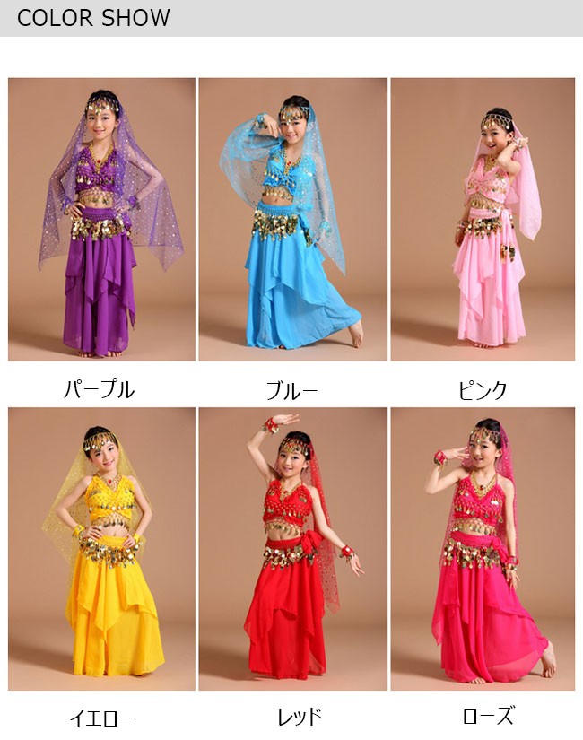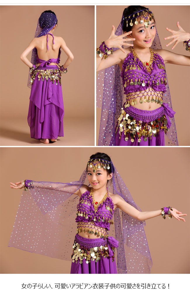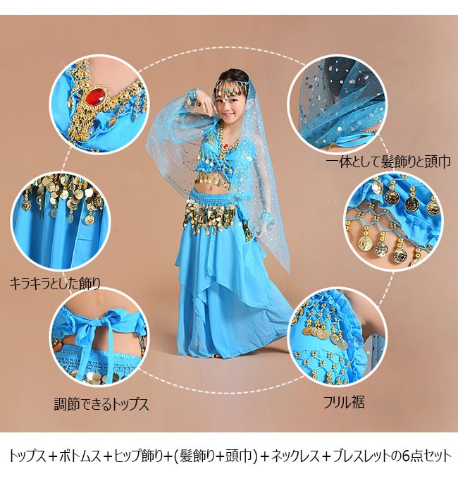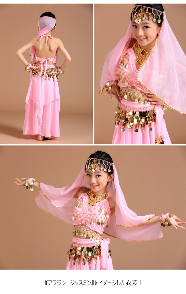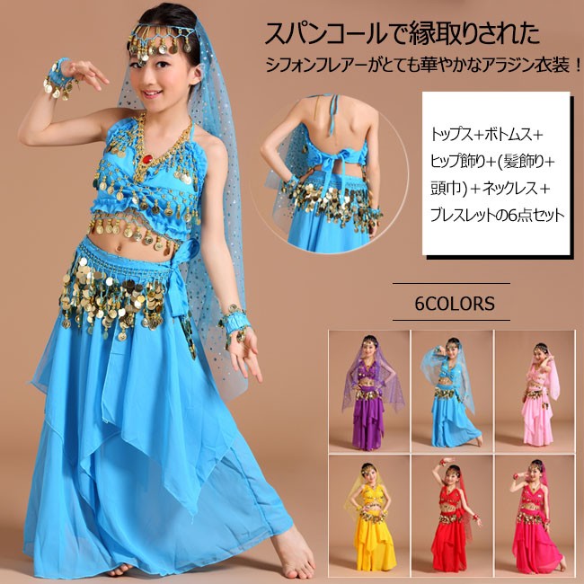 | 商品名 | 6点セット ベリーダンスセット アラビアン衣装 女の子 アラジン 子供服 アラジンコス スパンコール ダンス衣装 コスプレ 全身セット 上下セット |