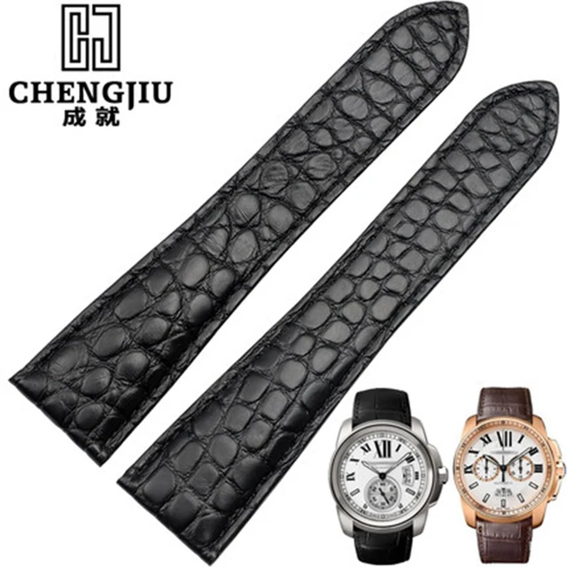 | [해외]24 미리메터 남성 악어 가죽 시계 스트랩 까르띠에/칼리버/W7100041 최고 브랜드 팔찌 배포 버클 밴드 액세서리 |