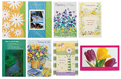 -. Feature : Assorted "Thinking of You" greeting cards / Includes 3 each of 8 different designs / Single-fold to approx. 5" x 7 1/2" / Envelopes included / Pack of 24