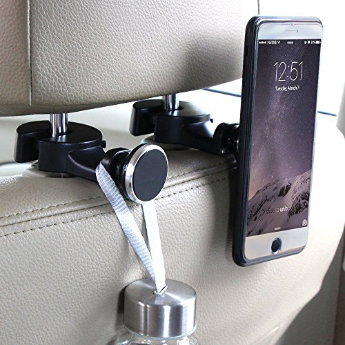 -. Title : Tablet holder for car,headrest back seat ipad iphone Magnetic car mount for Cellphone iPad Tablet GPS,Car Hooks Storage Organizer for Bag Purse Cloth Grocery,Silver (L+R)