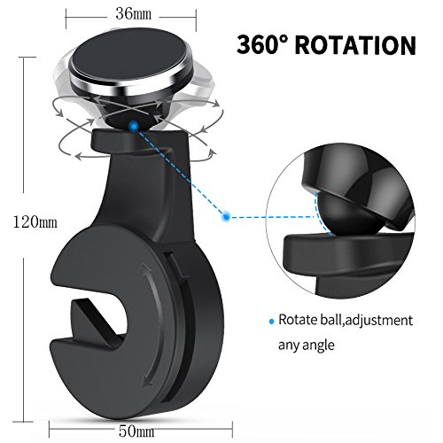 -. Feature : MULTI-FUNCTIONAL:It not only phone holder also a hook,you can put a phone and a bag on it.It can compatible with varieties of smartphones,iPad,tablets,GPS and eReaders and etc. / and eReaders and etc. SOLID AND DURABLE:Stable adsorption,hard to fall off.It has strengthen the magnets,the strong loading capacity can withstand 5Kg weight. / 360°3D ROTATION:Easy installation,put the hook into the headrest lever,lock the latch.Rotate the ball,adjustment any angle arbitrarily you want,all-directional experience. / LOCK DESIGN:Dual protection,push easily,upwards lock,downwards open.Dual hooks for tablet use,liberation your hands and enjoy your time. / ANTI-SCRATCH DESIGN:Anti-scratch silicone,smooth sawtooth cover,protect headrest lever,prevent hooks from having gaps and loosening.Hidden well,almost occupancy a little space.